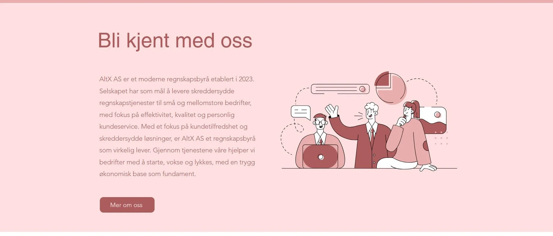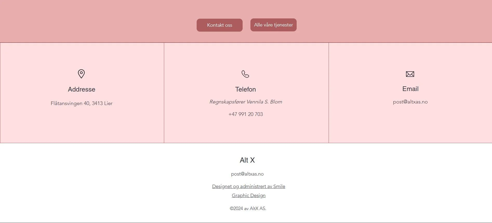 AltX AS AltX AS is a one-woman accounting firm. She needed a website to have information easily available to her customers, while also establishing her business in the online world. Portfolio Home
