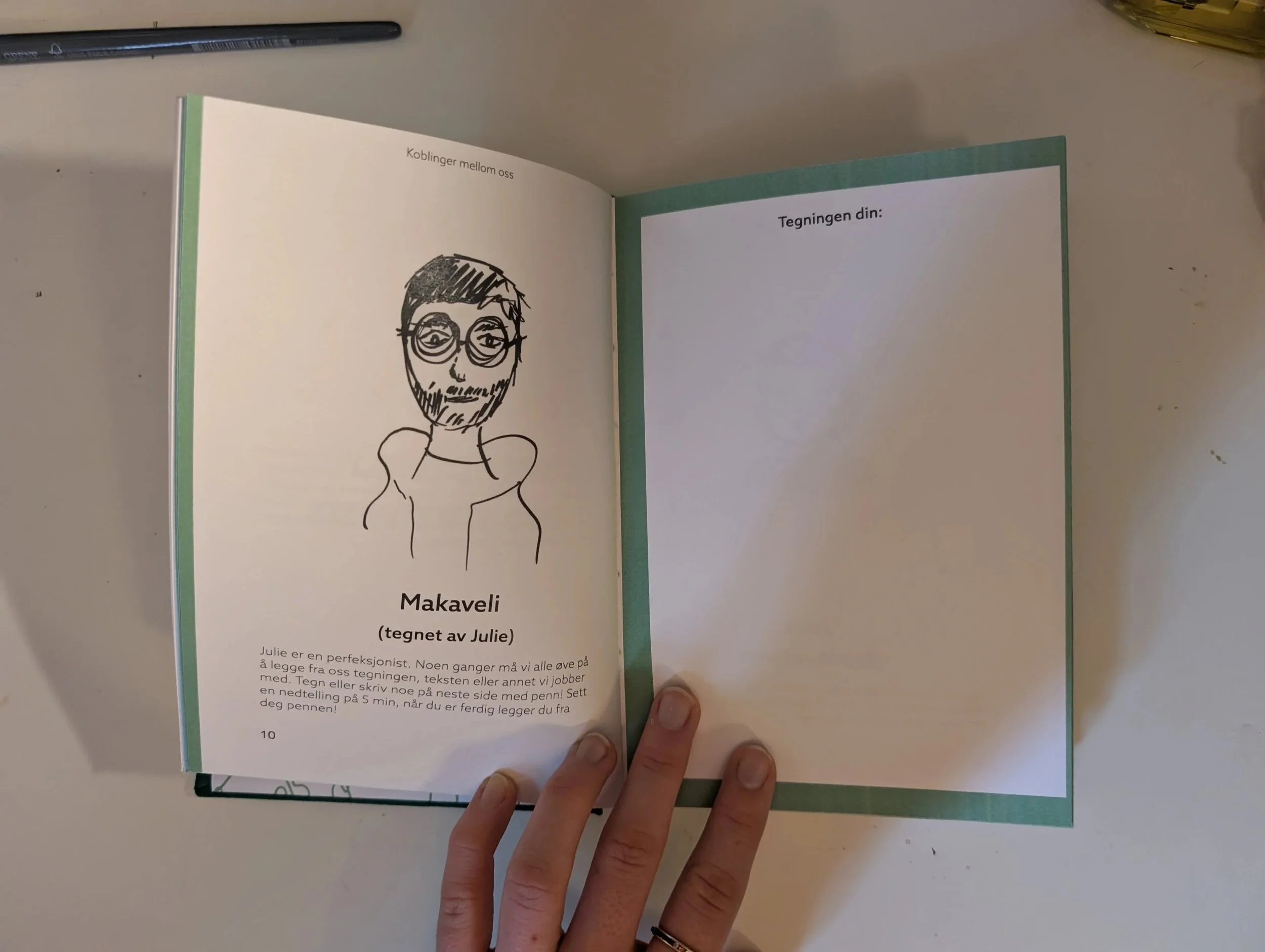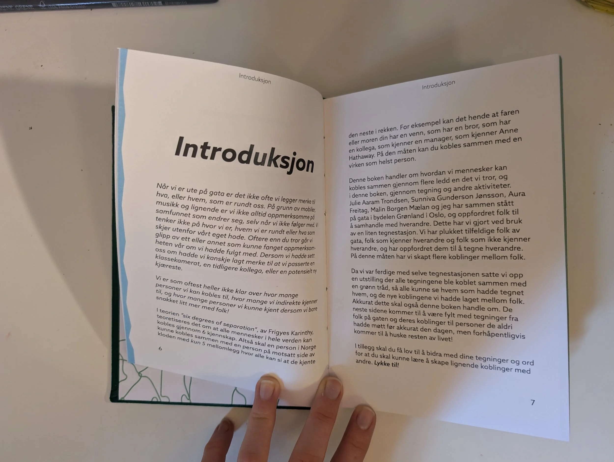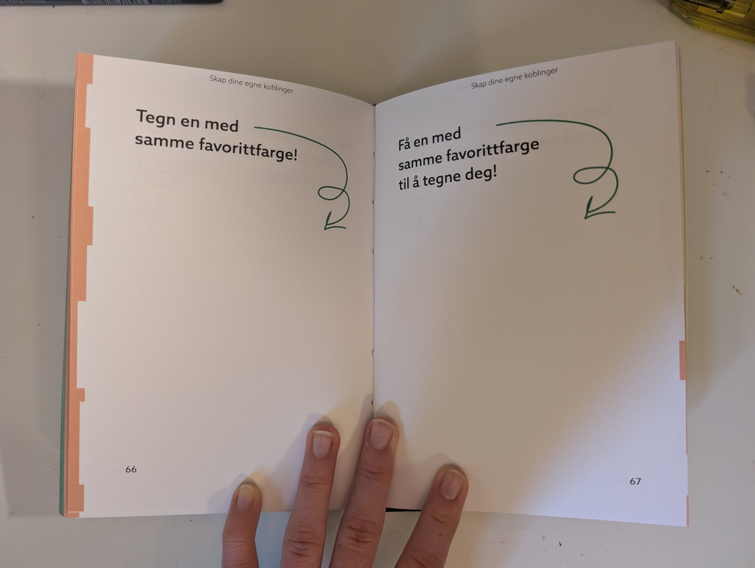 As a part of the subject Social Responsibility in Graphic Design we were placed in groups and told to first do a social experiment at Grønland in Oslo, then to create a book based on the information we got from said experiment. My group decided to do a drawing experiment. We set up a drawing station and got random people from the street to sit and draw each other. We used those photos to create an exhibition. After that we were split up and told to create something individual. I decided to take the pictures from the experiment and make a two part activity-book. In part one of the book, you have tasks to accomplish related to the drawings from the people on the street. In the second part you are encourage to participate in the experiment yourself and draw other people, while they draw you.
